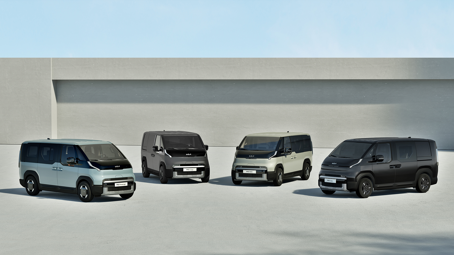 Kia har flera eltransportbilar på gång. Kia PV5 planeras att komma i tre varianter: Cargo, Passenger och Chassis Cab. Längre fram lanseras den större Kia PV7 och den minsta Kia PV1. Dessa modeller ingår i Kias PBV-program, som syftar till att skapa hållbara och ändamålsanpassade transportlösningar för olika typer av verksamheter och behov.
